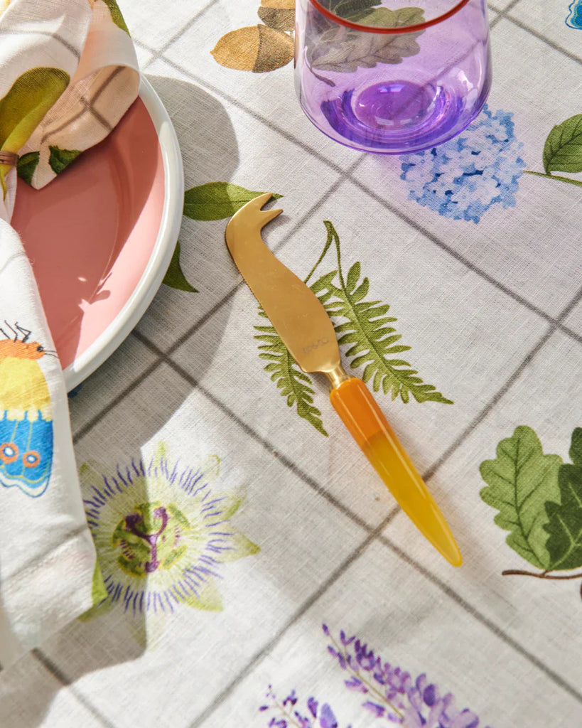 Cozy nights in, hearty shared meals, and indulging in faves, like wine and cheese are part of the perks of the cooler months! Elevate your cheese platters with the Lemon Zest Brasserie Cheese Knife. Featuring a lovely lemon yellow acrylic handle and a brushed brass-coated blade, this cheese knife is a little pop of colour to highlight your tasty trove of treats.