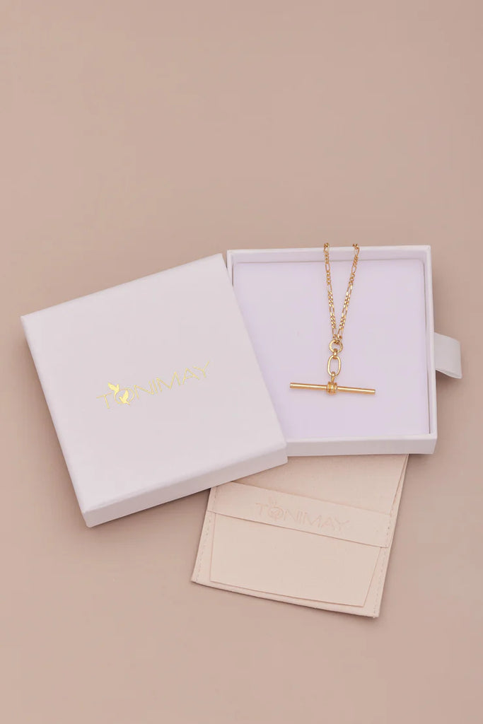 The Fob Necklace from Toni May is the perfect every day necklace. The Fob necklace is made on a thick figaro chain and fob detailing.