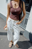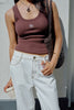 Zoe Contour Rib Scoop Tank - Chocolate Monogram Embroidery