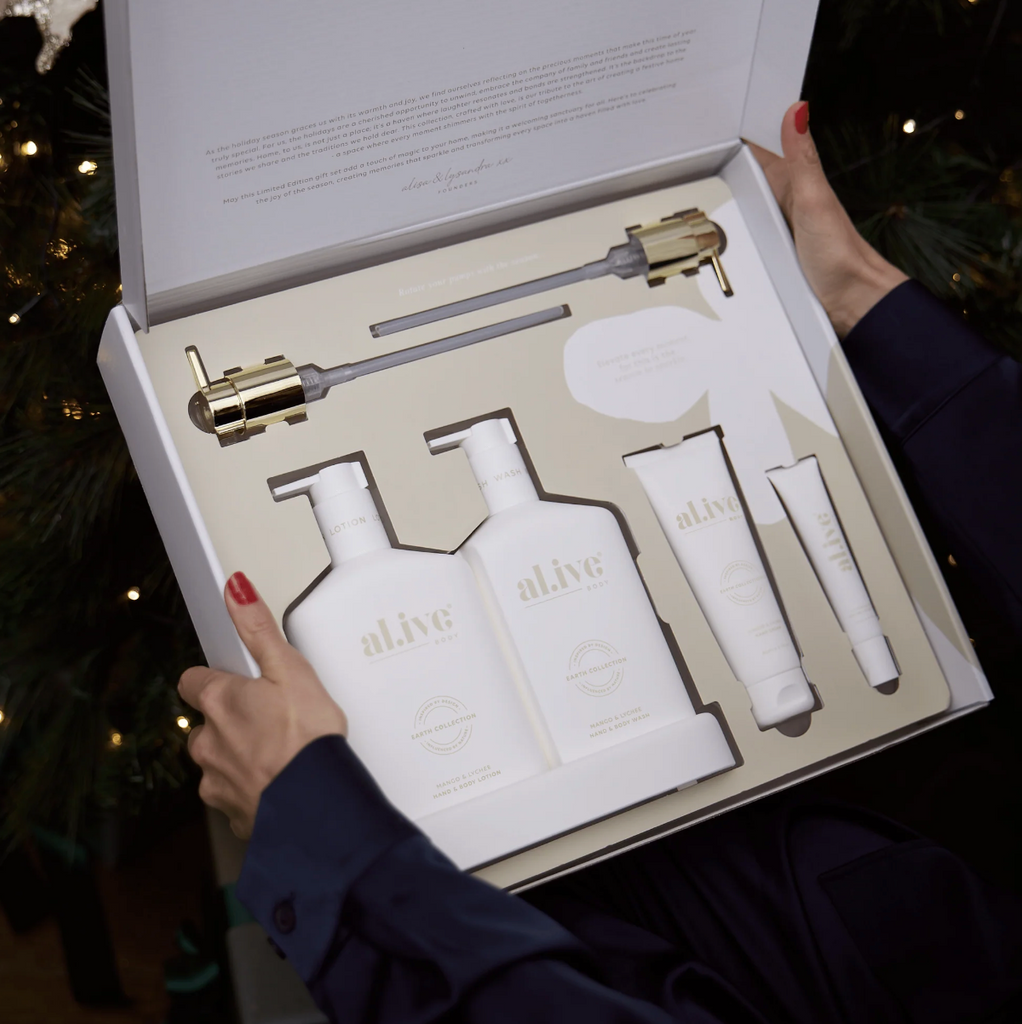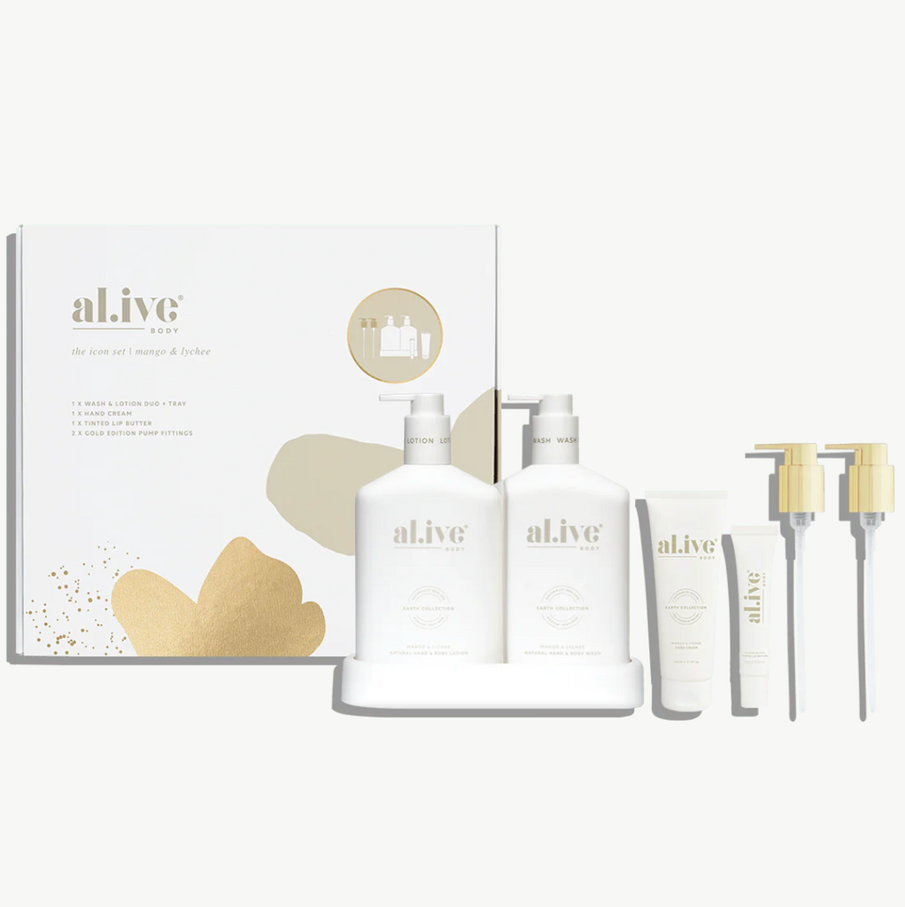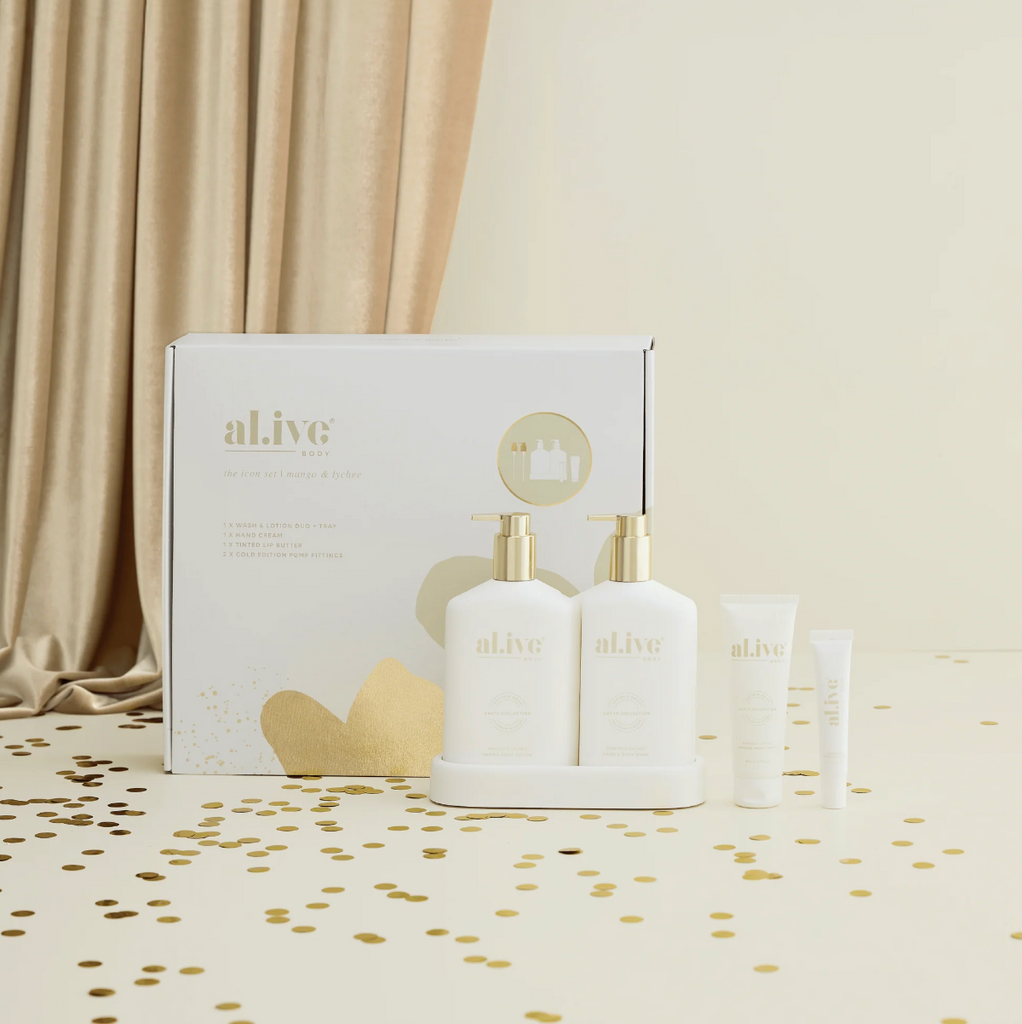 / Icon Set - Mango & Lychee Duo + Hand Cream + Lip Gloss + Extra Set of Gold Pumps