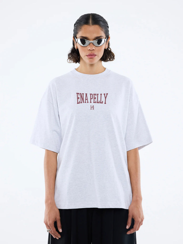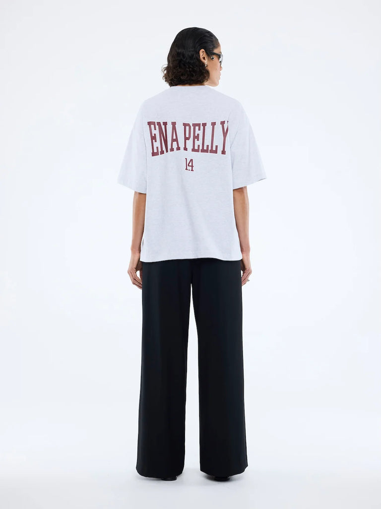 The Varsity Arch Tee from Ena Pelly is cut oversized with a classic crew neck and short sleeves. Finished with an arched collegiate emblem, it's a statement staple with effortless, athletic-inspired appeal.