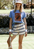 The Good Game Crew Tee reimagines vintage court style with a cheeky twist. Cut in a crew shape with a longer body, drop shoulders, and shorter sleeves than the Far Mer Box Tee, it delivers an oversized fit that feels relaxed yet intentional.