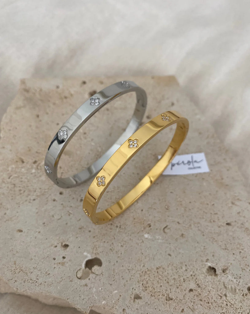 Crafted from tarnish resistant stainless steel, Perola's Remi Bangle is the perfect addition to your bracelet stack. That everyday accessory with a touch of luxe.