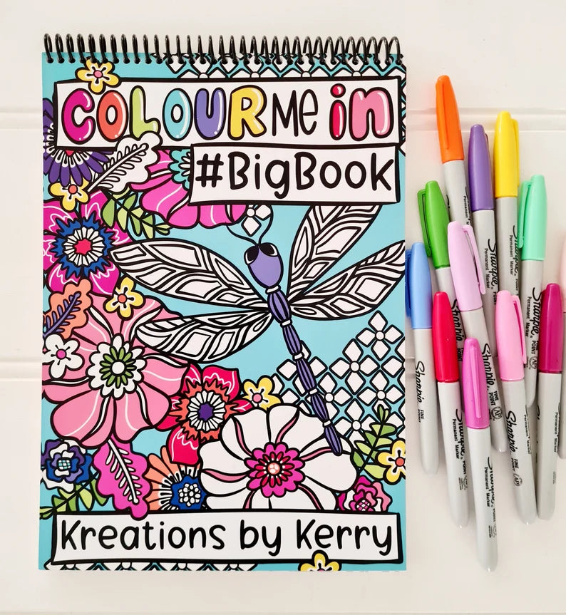 The Colour Me in books from Kreations by Kerry are beautifully made. Big Books are A4 in size with 25 card pages. Very satisfying to colour on as the bold sharpies don't go through to the next page.