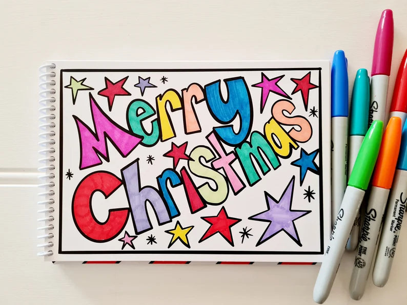 There are 25 hand drawn Holly Jolly designs, gingerbread shapes and joyful lines. The A5 sized card pages are super lovely to add bold sharpie pen colours to and it doesn't go through to the next page.