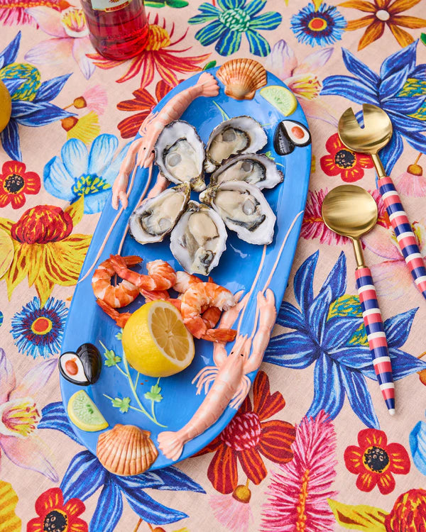 Serve up a taste of summer with Kip & Co's Fruits De Mer Oval Platter. Hand-painted with lobsters, shells, mussels and lemon wedges on sea blue ceramic, this vintage-inspired piece is made for sides, salads and seafood spreads that deserve to be centre stage. Both nostalgic and timeless, it’s a platter that makes every gathering feel like a celebration.