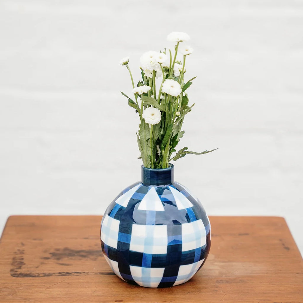 Round Bud Vase - Navy & Cornflower Blue Gingham