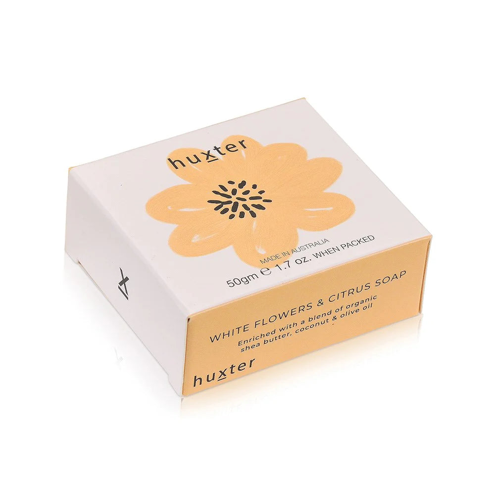 Indulge in luxury with Huxter's Mini Pale Orange Flower Soap. Made with 100% natural ingredients and enriched with nourishing oils and butters, this French triple-milled soap will leave your skin soft and delicately scented with our exclusive blend of White Flowers and Citrus. A must-have for any sophisticated skin care routine.
