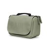 The Texel Wash Bag in Green is a must-have for all your travel needs. Its bi-fold cover reveals a spacious interior, complete with slip pockets and an elastic band for secure storage. The cover also features zip pockets and a convenient hanger for easy access. Finished with a padded handle, it's the epitome of functional luxury.