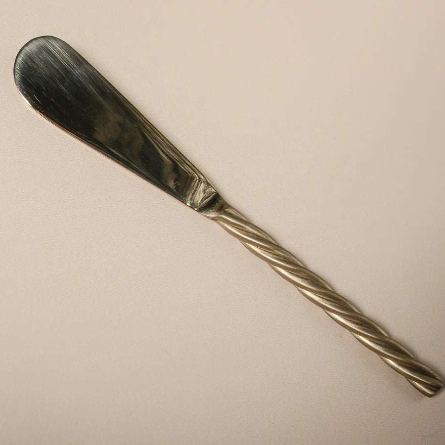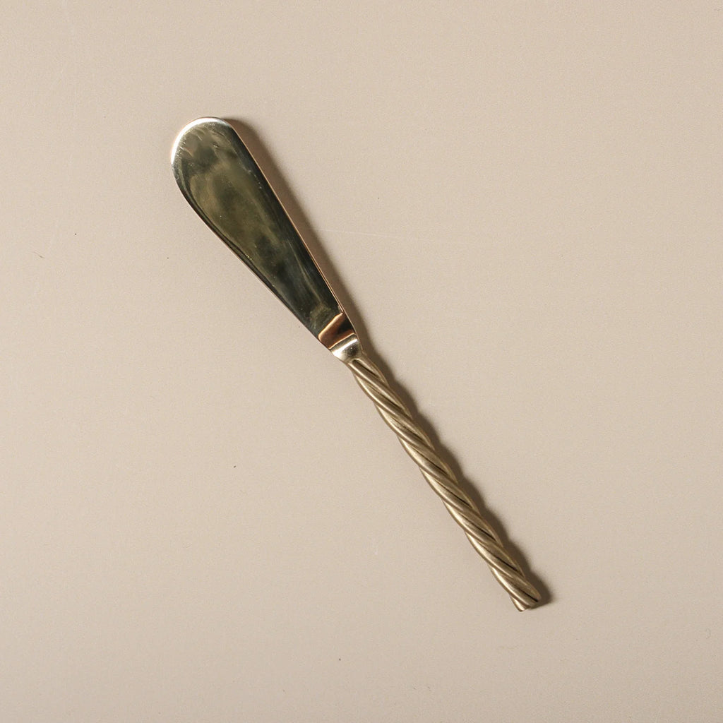The Spindle Spread Knife merges form and function with its delicately twisted, rope-like handle and champagne-coloured finish. This subtle textural detail enhances grip while adding a sculptural element to the piece, making it both a practical and curated addition to a well-styled table. Ideal for serving butter, pâté, or soft cheeses, the Spindle Spread Knife brings a refined yet organic detail to contemporary dining.