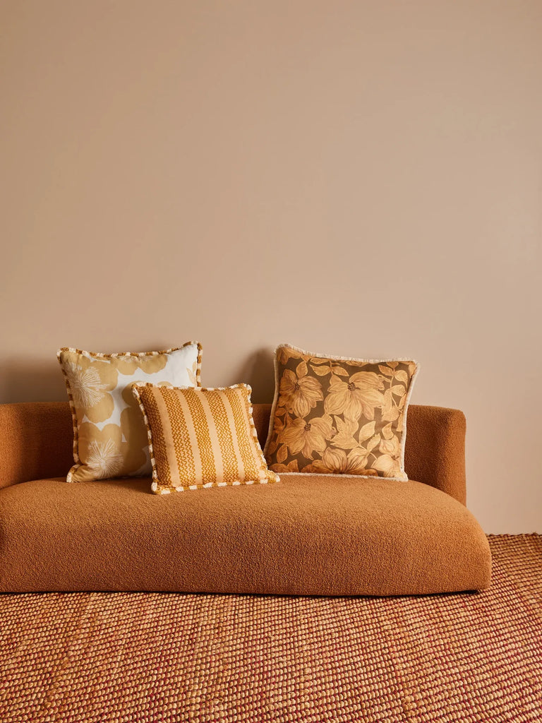 Inspired by the bold forms of anemones, Jardin in Wheat is a neutral floral cushion that offers a soft, natural take on graphic prints. Grounded yet expressive for tonal styling.
