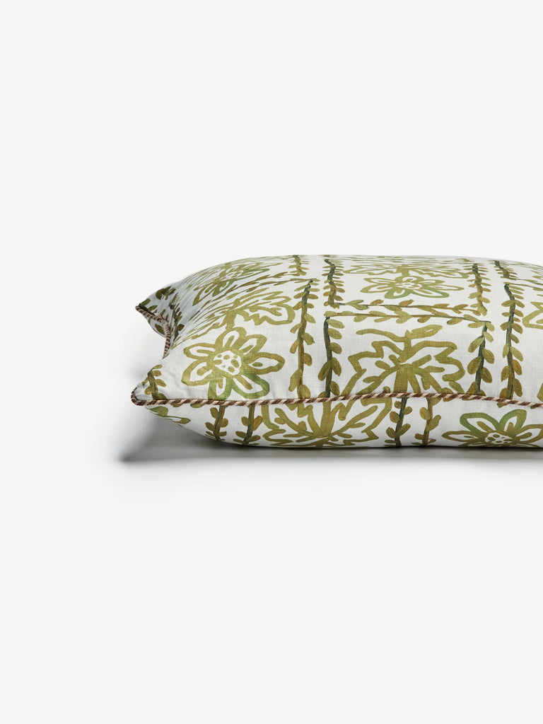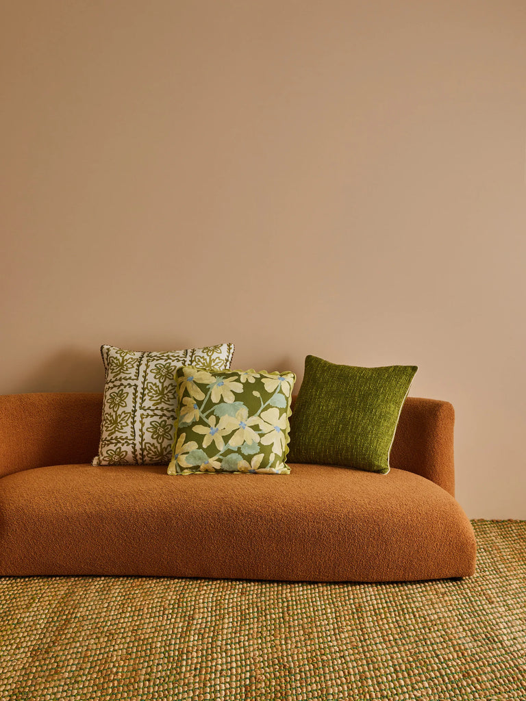 This olive green linen cushion reimagines Bonnie & Neil's Daisy floral in a grounding tone, balancing bold 1960s colour with vintage-inspired detail. A versatile design that brings calm to patterned pairings.