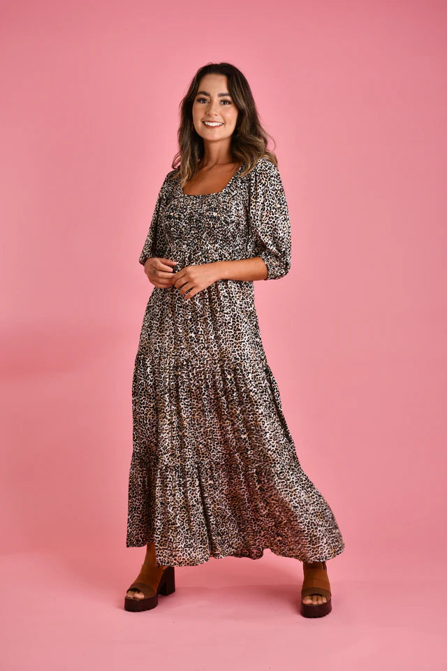 The Montauk dress is young & fun. It has a fitted bodice with elastic rouching and beautiful sleeves!