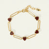 Indulge in romance with the Venus Chain Bracelet. Luscious garnet hearts, known for their symbolism of love and loyalty, are connected by elegant, elongated gold links. Made of 18k gold vermeil, this exquisite bracelet will enhance any outfit with its luxurious paperclip chain design.