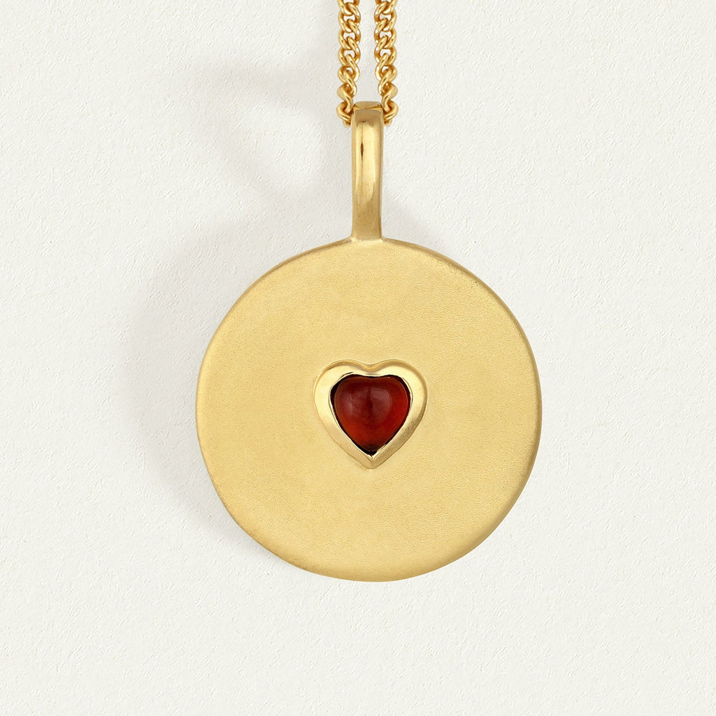 Add a touch of divine elegance with our Venus Coin Necklace. This 18k gold vermeil necklace features a lustrous garnet heart pendant, exuding love and beauty just like the goddess herself. Perfect for those who seek timeless allure and desire.