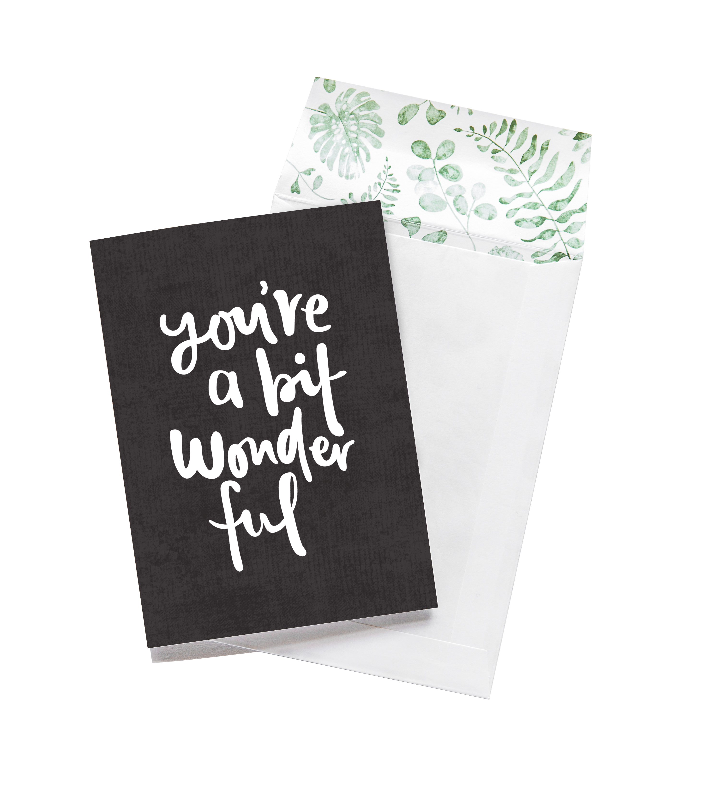 - Single luxe greeting card with custom printed envelope with a blank interior.