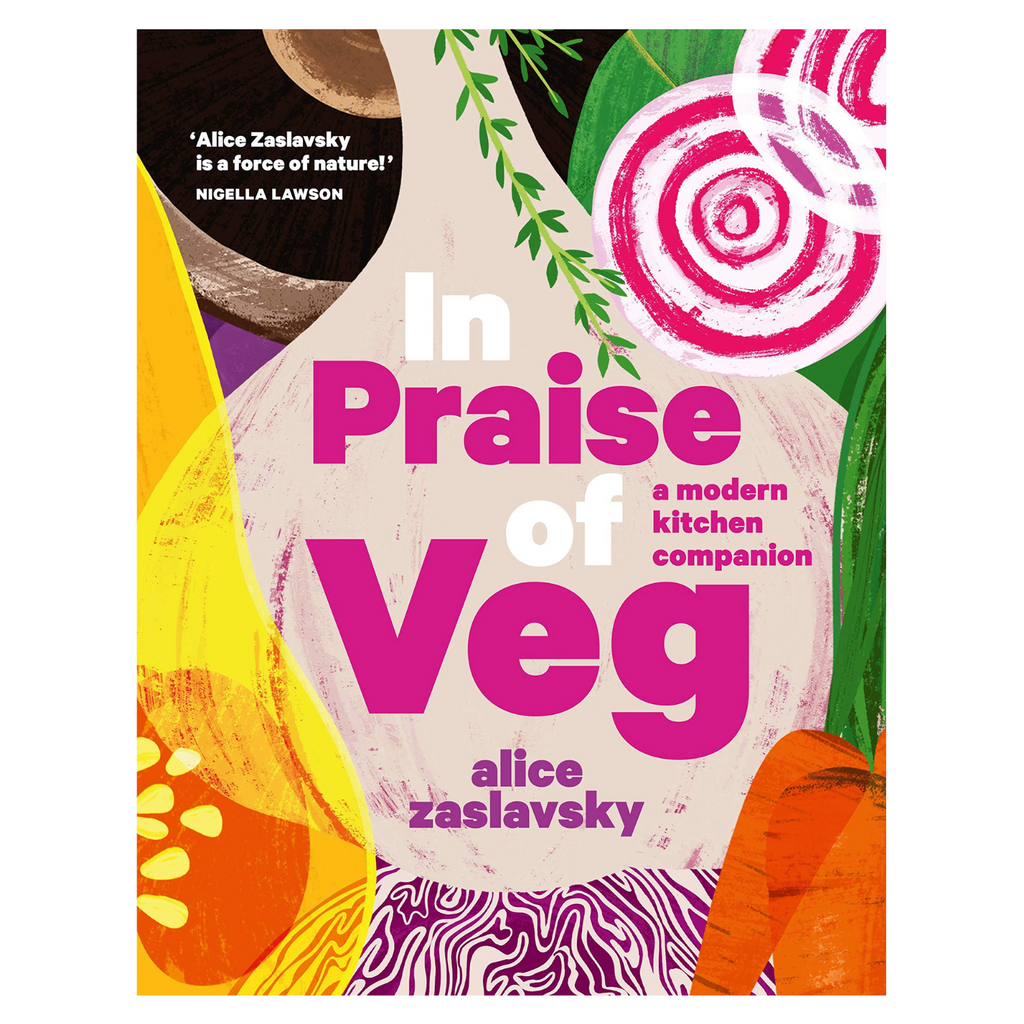 In this comprehensive and fully illustrated kitchen companion, food writer and presenter Alice Zaslavsky profiles 50 favourite vegetable varieties, offering 150+ recipes reflective of both tradition and modernity, just as all good cooking should be. Uniquely organised by colour and filled with countless tips on flavour combinations, rule-of-thumb buying/storing/cooking methods, shortcuts, and veg wisdom from over 50 of the world’s top chefs, In Praise of Veg will help beginners and avid cooks alike turn a bag of yawns or a produce-box surprise into a knock-out meal.