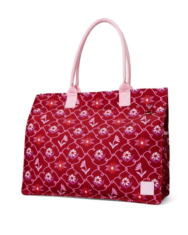 Indulge in luxury with The Somewhere Co's Ultimate Tote Bag. With a waterproof pocket, water resistant lining, and D-ring for keys, this bag is perfect for a day at the beach or running errands. Elegant and practical, it can carry all your essentials and more. A must-have for any fashion-forward individual.