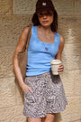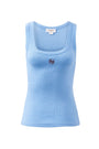 Zoe Contour Rib Scoop Tank - Powder Blue Monogram Embroidery